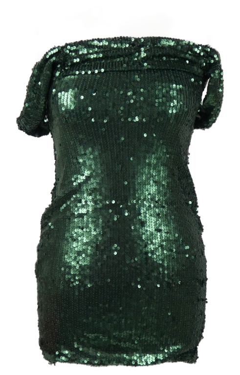 Nové - Dámské tmavozelené flitrové minišaty s odhalenými rameny In The Style