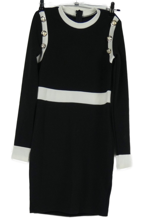 Dámské černo-bílé vzorované pouzdrové šaty s pruhy a gombíky Shein