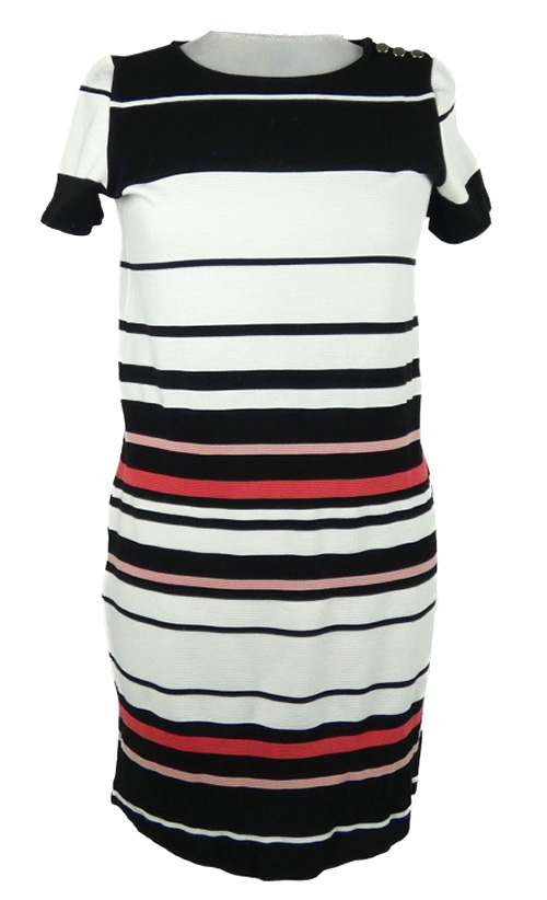 Dámské černo-bílo-červené pruhované žebrované šaty Amisu