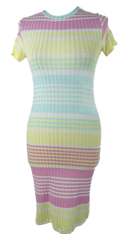 Dámské růžovo-žluto-modré pruhované žebrované šaty Primark