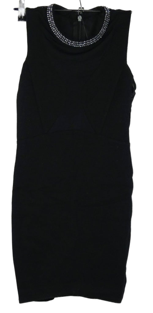 Dámské černé minišaty s tylovým výstřihem a kamínky