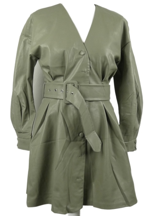 Dámské khaki koženkové kabátové šaty s páskem Zara