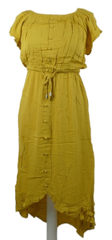 Dámské okrové mullet šaty s lodičkovým výstřihem a stahováním Peacocks