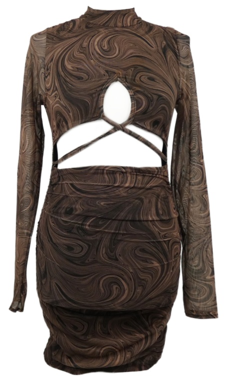 Dámské hnědé vzorované šaty s průstřihem Rebellious
