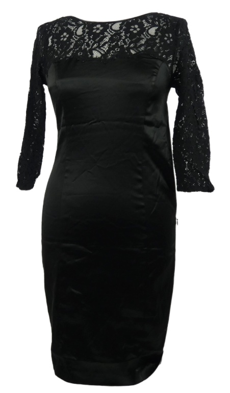 Dámské černé saténové pouzdrové šaty s krajkovými rukávy Oasis