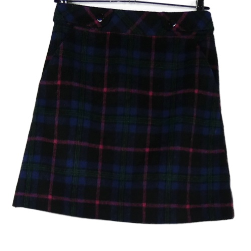 Dámská černo-modro-růžová kostkovaná vlněná sukně TU