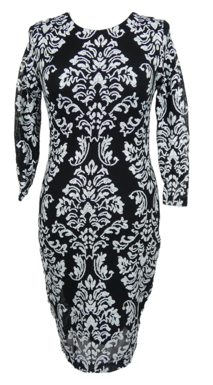 Dámské černo-bílé tylové flitrové vzorované šaty TFNC