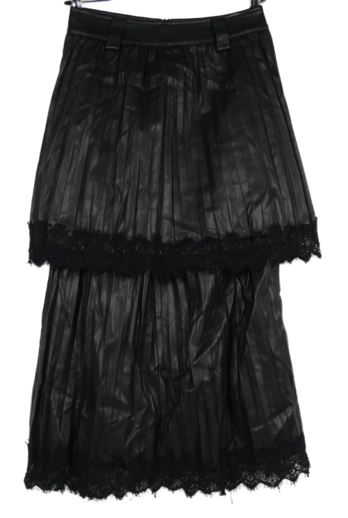 Dámská černá koženková plisovaná midi sukně s krajkovými volánky River Island