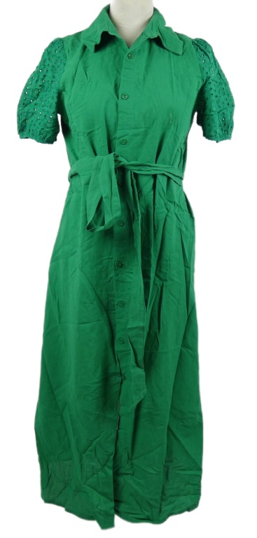 Dámské zelené plátěné košilové šaty s madeirovými rukávy a páskem