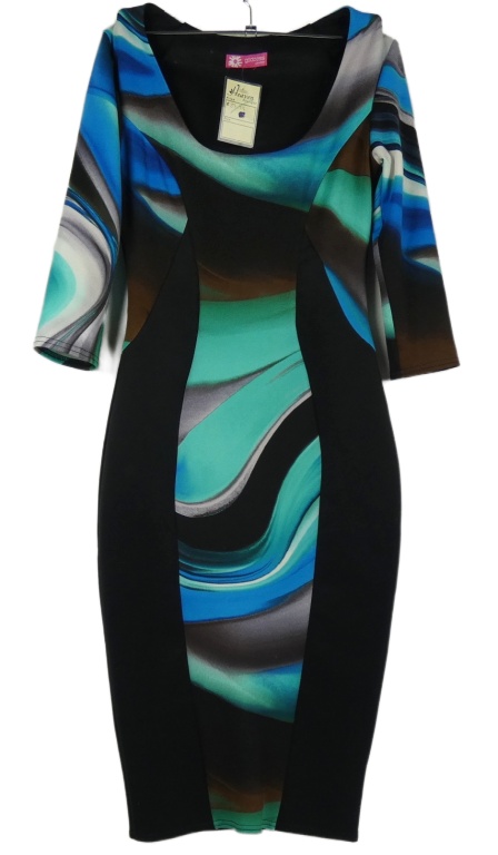 Nové - Dámské černo-modro-zelené vzorované pouzdrové šaty Goddess