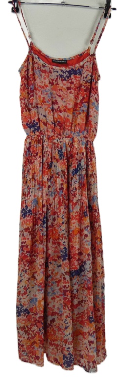 Dámské červeno-růžové květované šifonové dlouhé šaty Warehouse