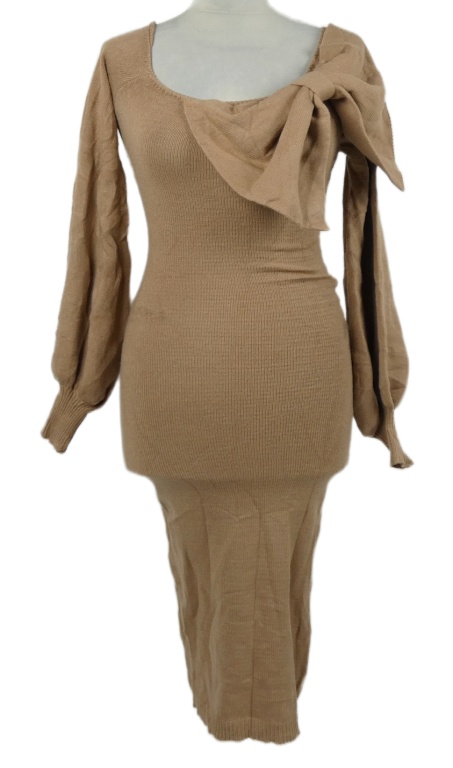 Dámské pudrové svetrové šaty s mašlí Shein