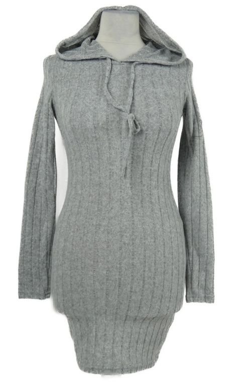 Dámské šedé žebrované úpletové šaty s kapucí Shein