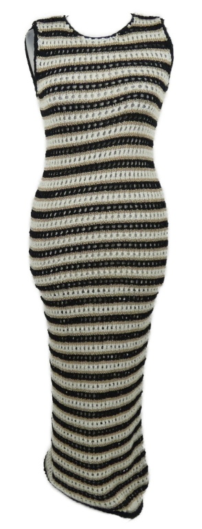 Dámské černo-zlato-bílé pruhované pletené ažurové midi šaty Primark