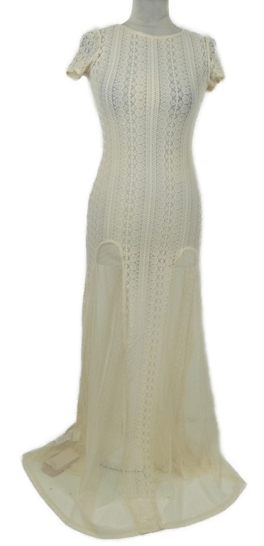Nové - Dámské smetanové krajkovo/tylové dlouhé šaty Shein