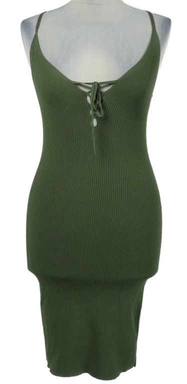 Dámské khaki žebrované pletené minišaty se šněrováním Bershka