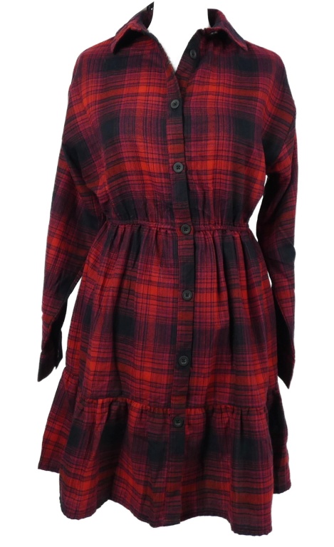 Nové - Dámské červeno-tmavomodré kostkované košilové šaty Primark