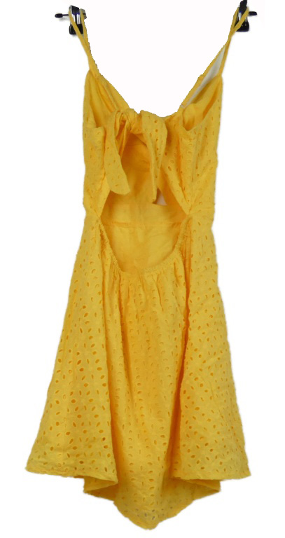 Dámské okrové madeirové plátěné šaty s mašlí Shein
