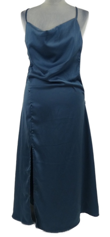 Dámské modrošedé saténové midi společenské šaty s vodou Cider