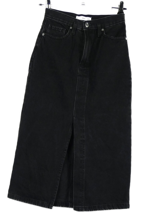 Dámská černá riflová pouzdrová midi sukně s rozparkem Mango