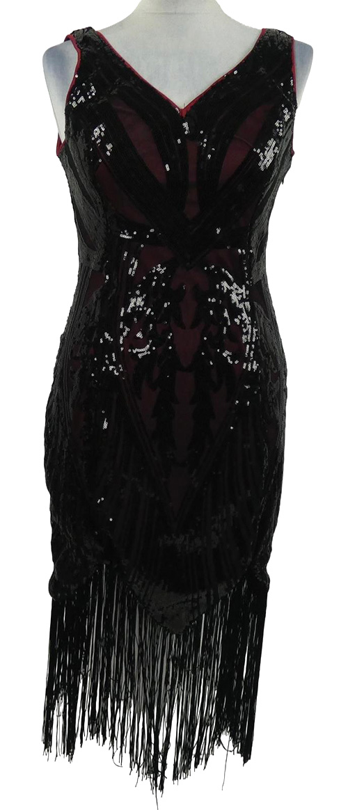 Dámské černo-vínové flitrové společenské šaty s třásněmi Shein