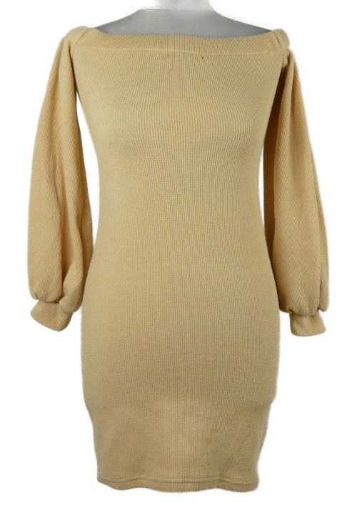 Dámské béžové svetrové šaty s lodičkovým výstřihem Shein