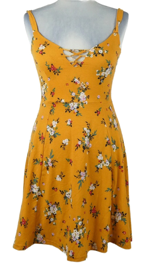 Dámské oranžové kytičkované šaty se šněrováním C&A
