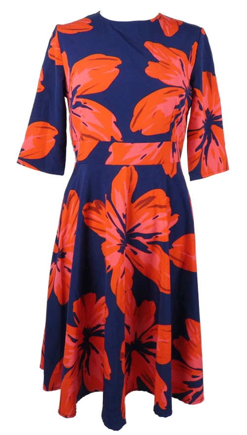 Nové - Dámské tmavomodro-jahodové květované šaty