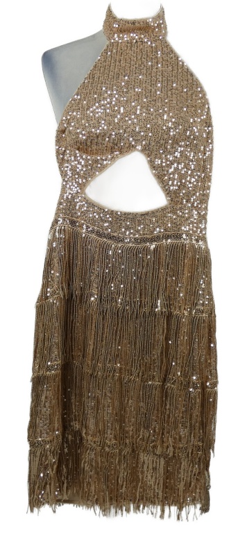 Dámské starorůžové flitrové třásňové společenské šaty s průstřihem Shein