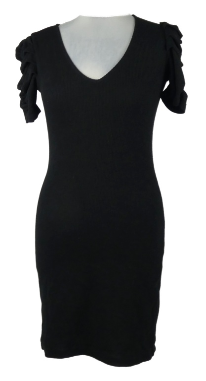 Dámské černé úpletové šaty s řasenými rukávy MNG