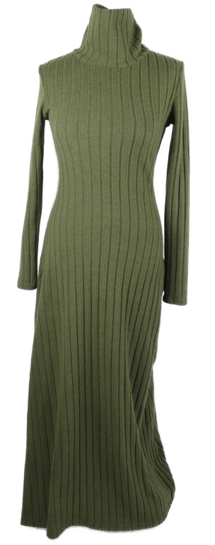 Dámské khaki žebrované úpletové dlouhé šaty s rolákem Shein