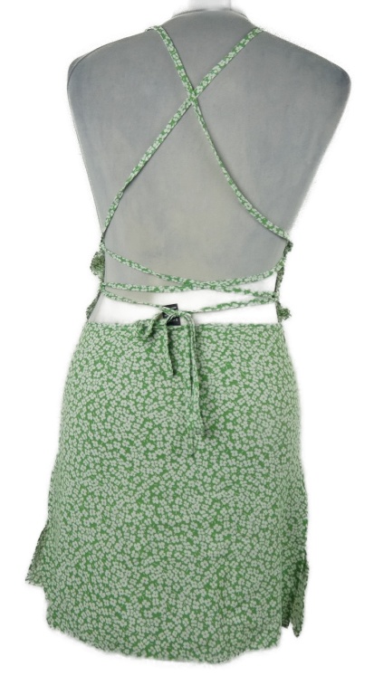 Dámské zeleno-bílé kytičkované šaty se zavazováním Shein