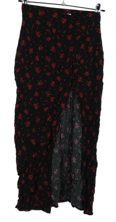 Dámská černo-červená kytičkovaná midi sukně s rozparkem