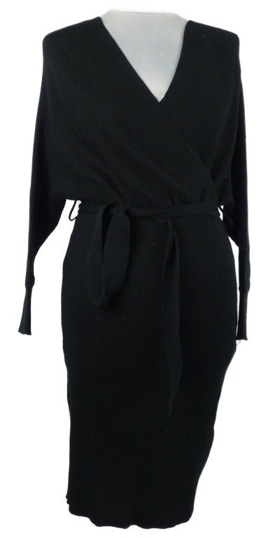 Dámské černné svetrové žebrované šaty s páskem