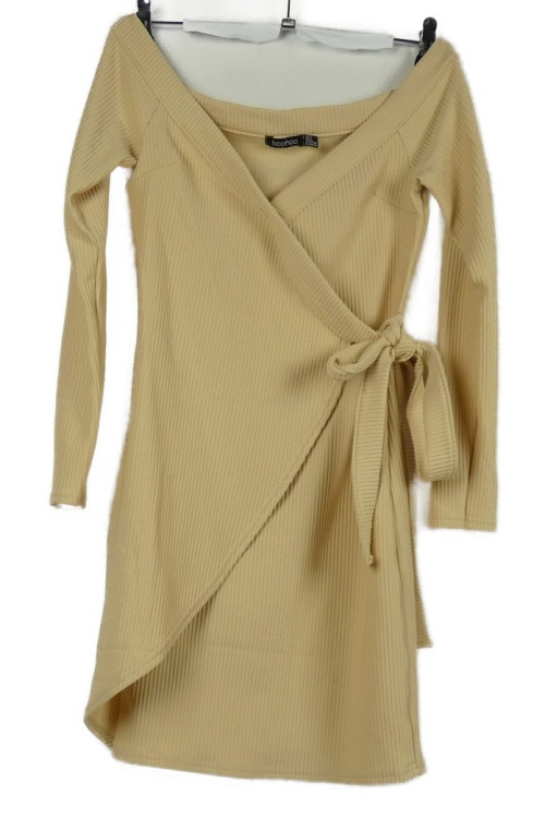 Dámské béžové žebrované zavinovací šaty Boohoo