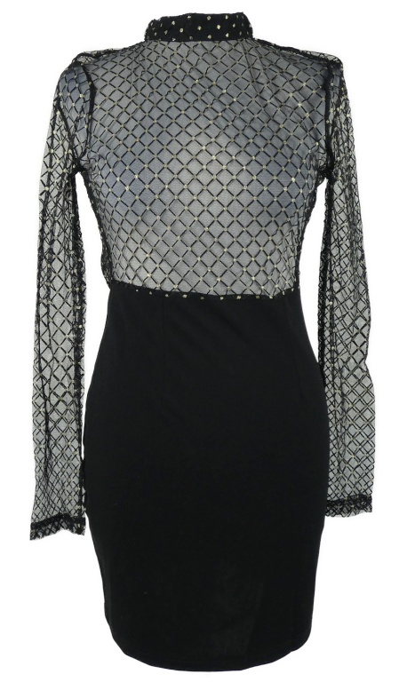 Dámské černé pouzdrové šaty s tylovým vzorovaným živůtkem PrettyLittle Thing