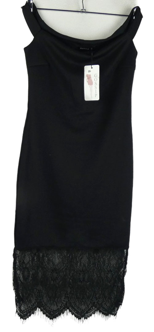 Nové - Dámské černé elastické šaty s lodičkovým výstřihem a krajkovým lemem Gossip