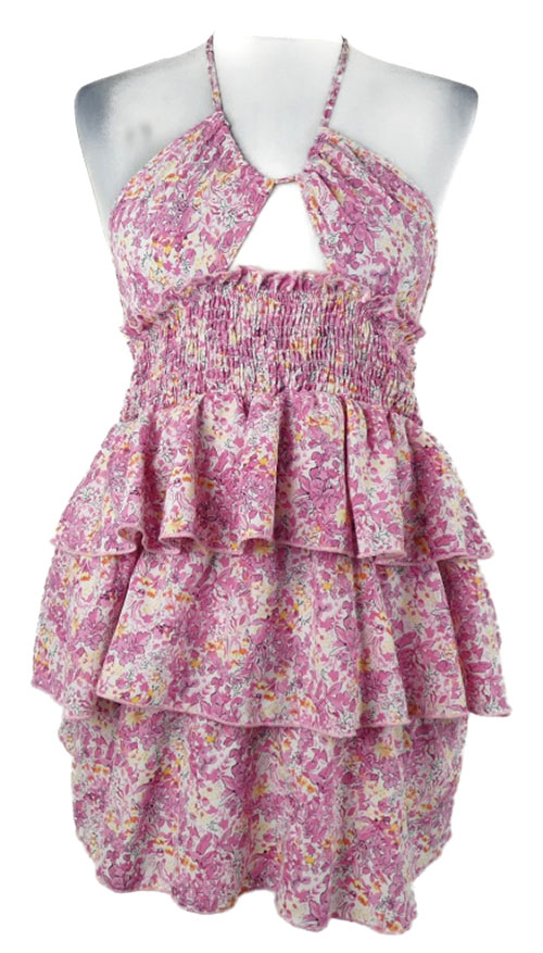 Dámská růžová kytičkovaná šatová tunika s volánky Shein