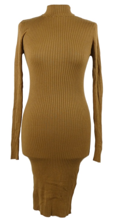 Dámské béžové žebrované pletené šaty se stojáčkem Amisu