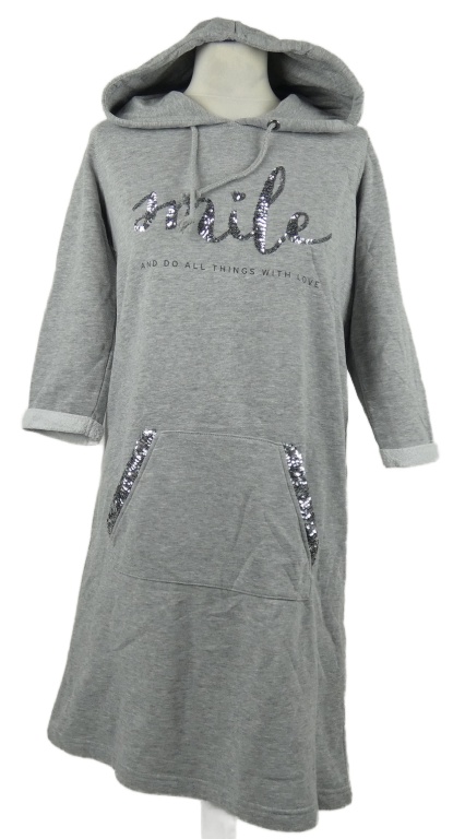 Dámské šedé teplákové šaty s nápisem a kapucí Gina