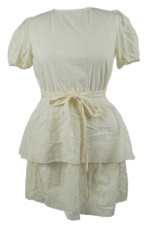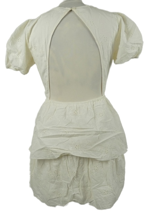 Dámské smetanové madeirové plátěné minišaty s volnými zády a páskem H&M