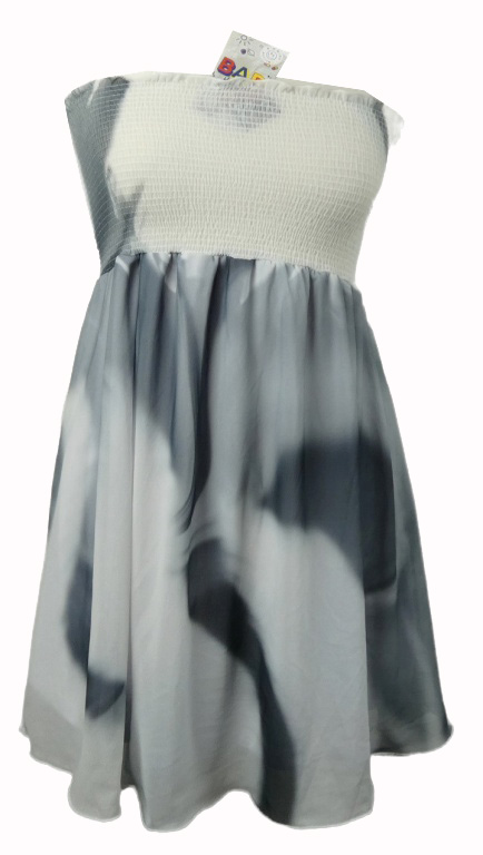 Nové - Dámské bílo-šedé vzorované žabičkové tylové šaty