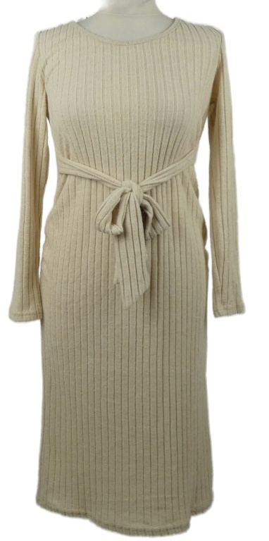 Dámské béžové žebrované úpletové midi šaty s páskem Shein