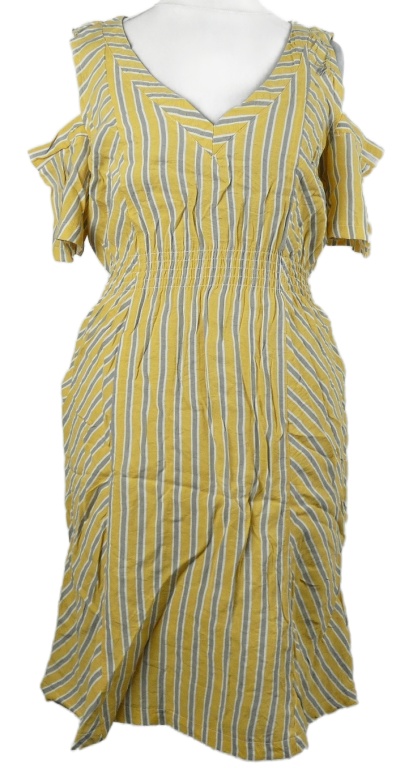Dámské žluto-šedé pruhované šaty s volnými rameny Boohoo