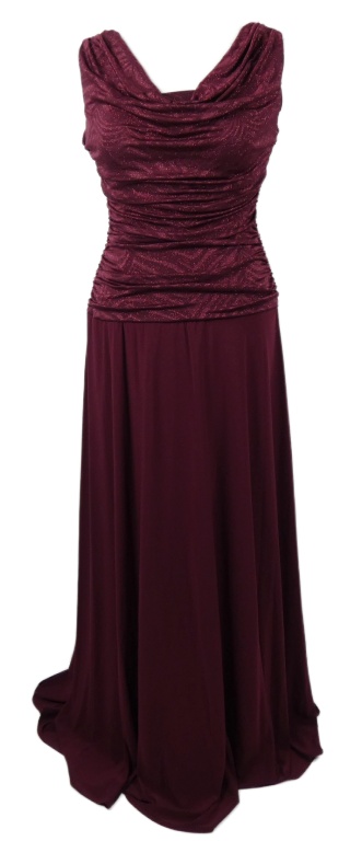 Dámské vínové třpytivé společenské dlouhé šaty R&M