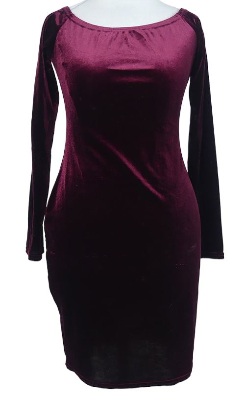 Dámské vínové sametové šaty s lodičkovým výstřihem MissGuided