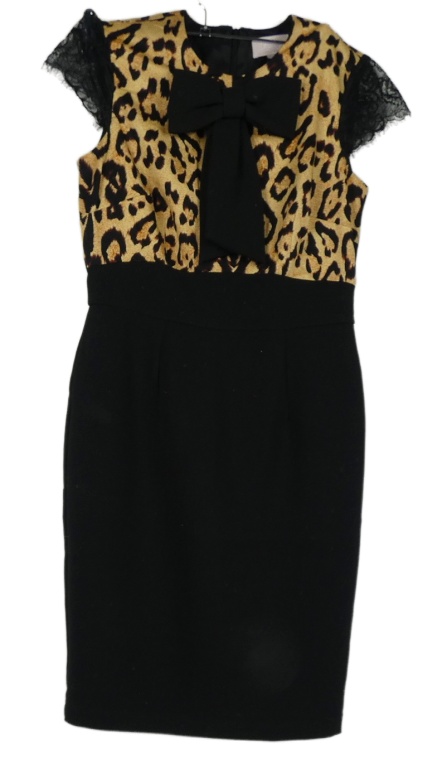 Dámské béžovo-černé vzorované pouzdrové šaty s mašlí Philip