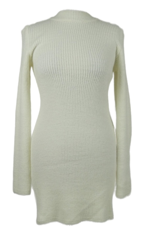 Dámské smetanové chlupaté svetrové žebrované šaty Zara