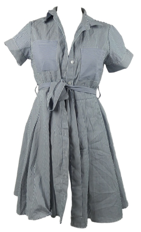 Dámské bílo-tmavomodré pruhované košilové šaty s páskem PassPort