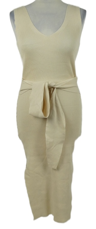 Dámské smetanové žebrované midi šaty s páskem Giorgia